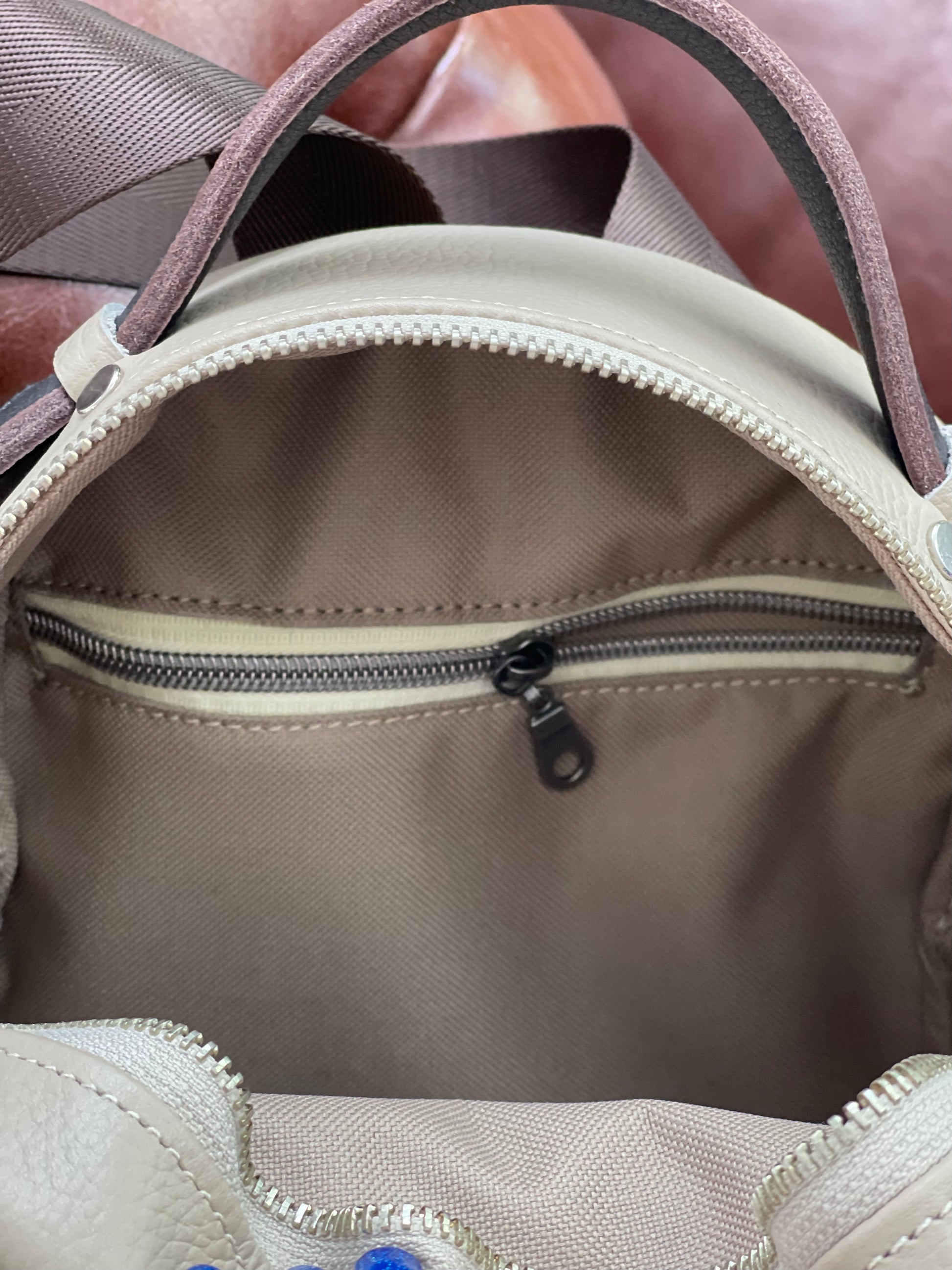– Fach mit Reißverschluss - Wasserfester Stoff in Beige (optional individualisierbar)