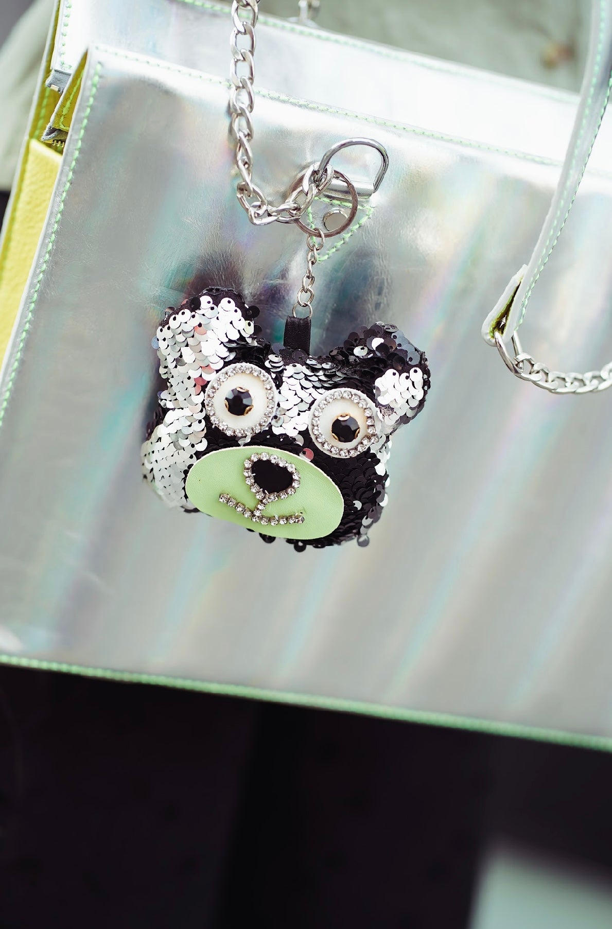 - Anhänger: Pailetten & Kunstleder (abnehmbar)